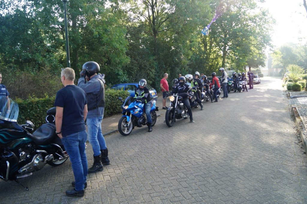 Zaterdag 31 augustus was het tijd voor de 23e motortreffen zo als de organisatie het omschrijft. Vanaf half negen konden de opgegeven 27 motorrijders en 11 bijrijders zich melden bij het Bartoleshûs. Altijd een gezellige drukte van rijders, bijrijders en uitzwaaiers. Nadat een ieder zijn of haar bijdrage had gedaan waren er nog wat mededelingen van de leiding.