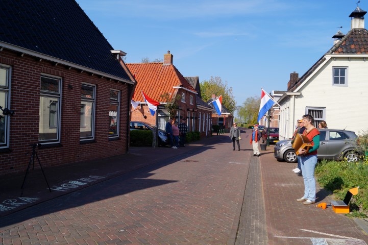 Met in acht nemen van de Corona maatregelen stonden uiteindelijk de buren van de Heirweg om klokslag 10:00 uur op gepaste afstand mee te zingen. Zoon Hans Westerhof uit Zuidhorn kwam met zijn drone langs om het van bovenaf te filmen.