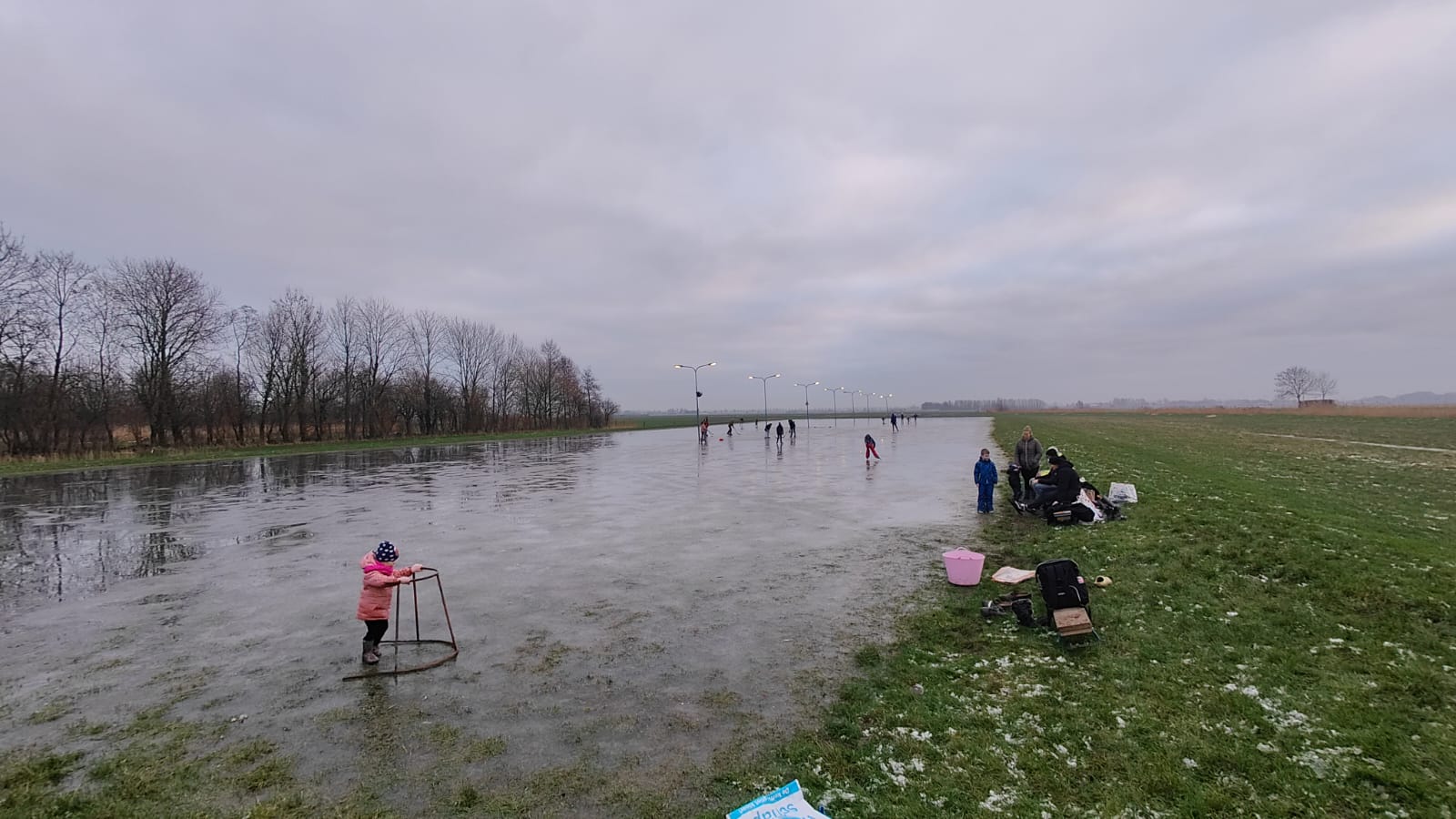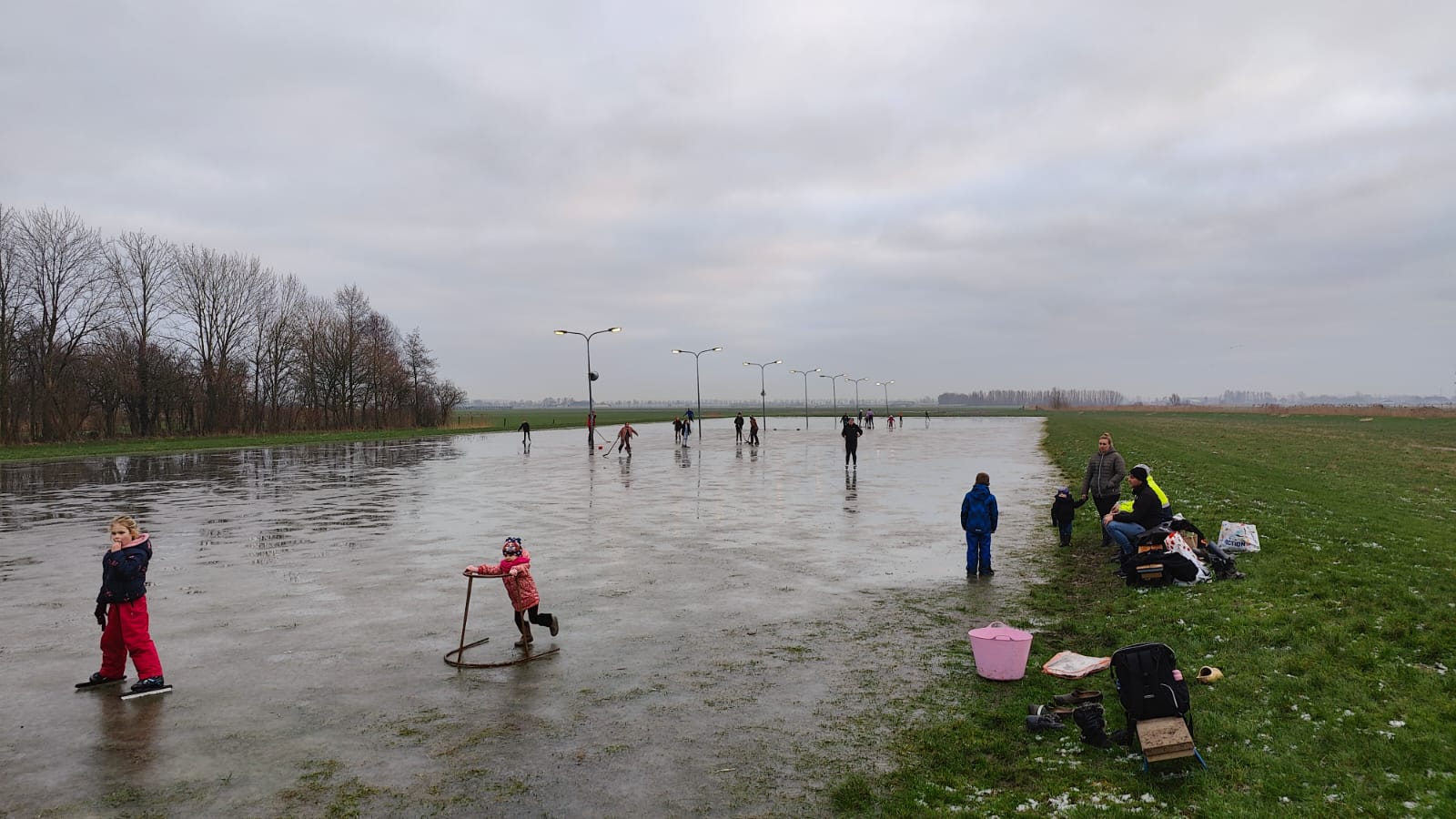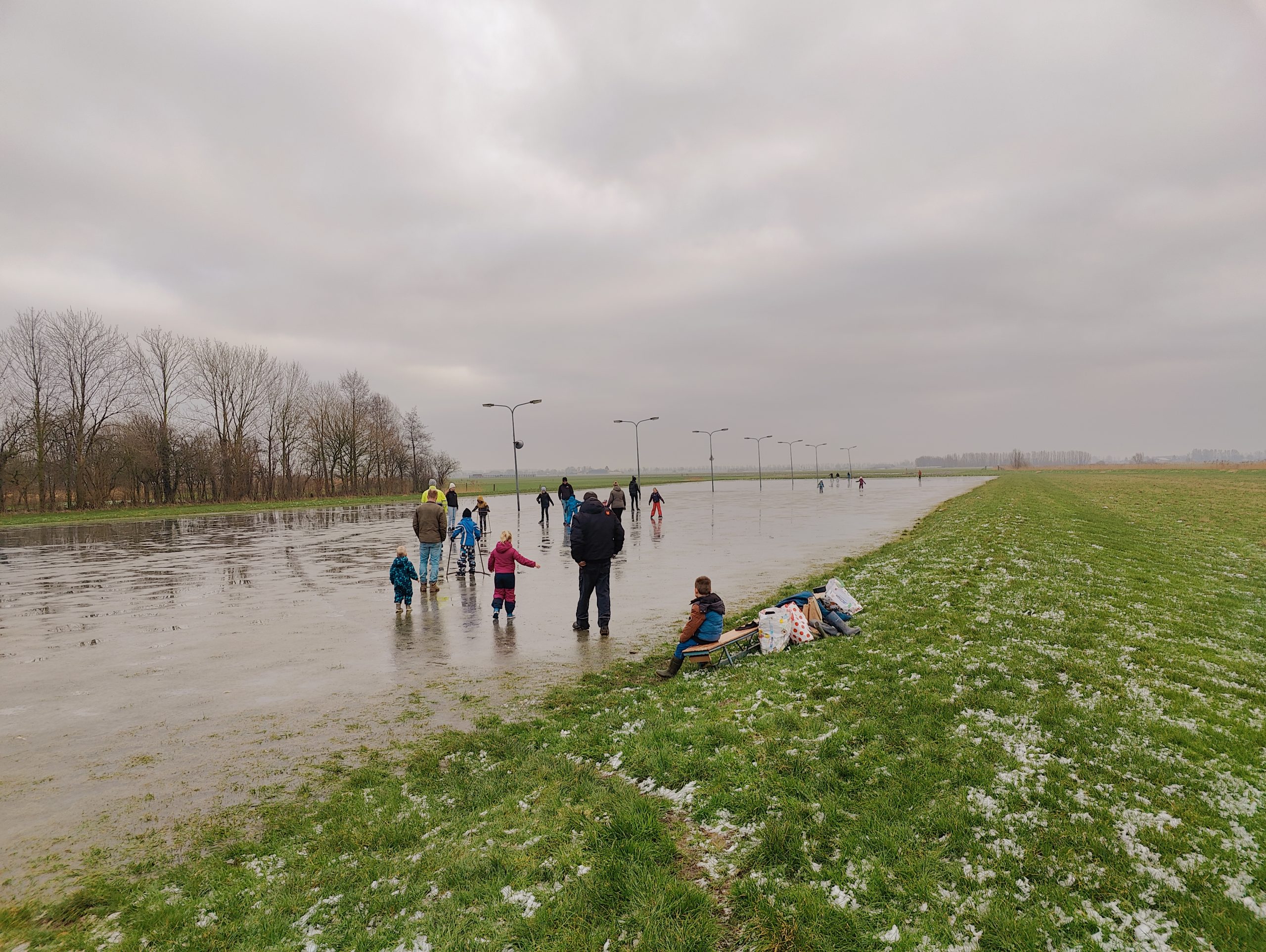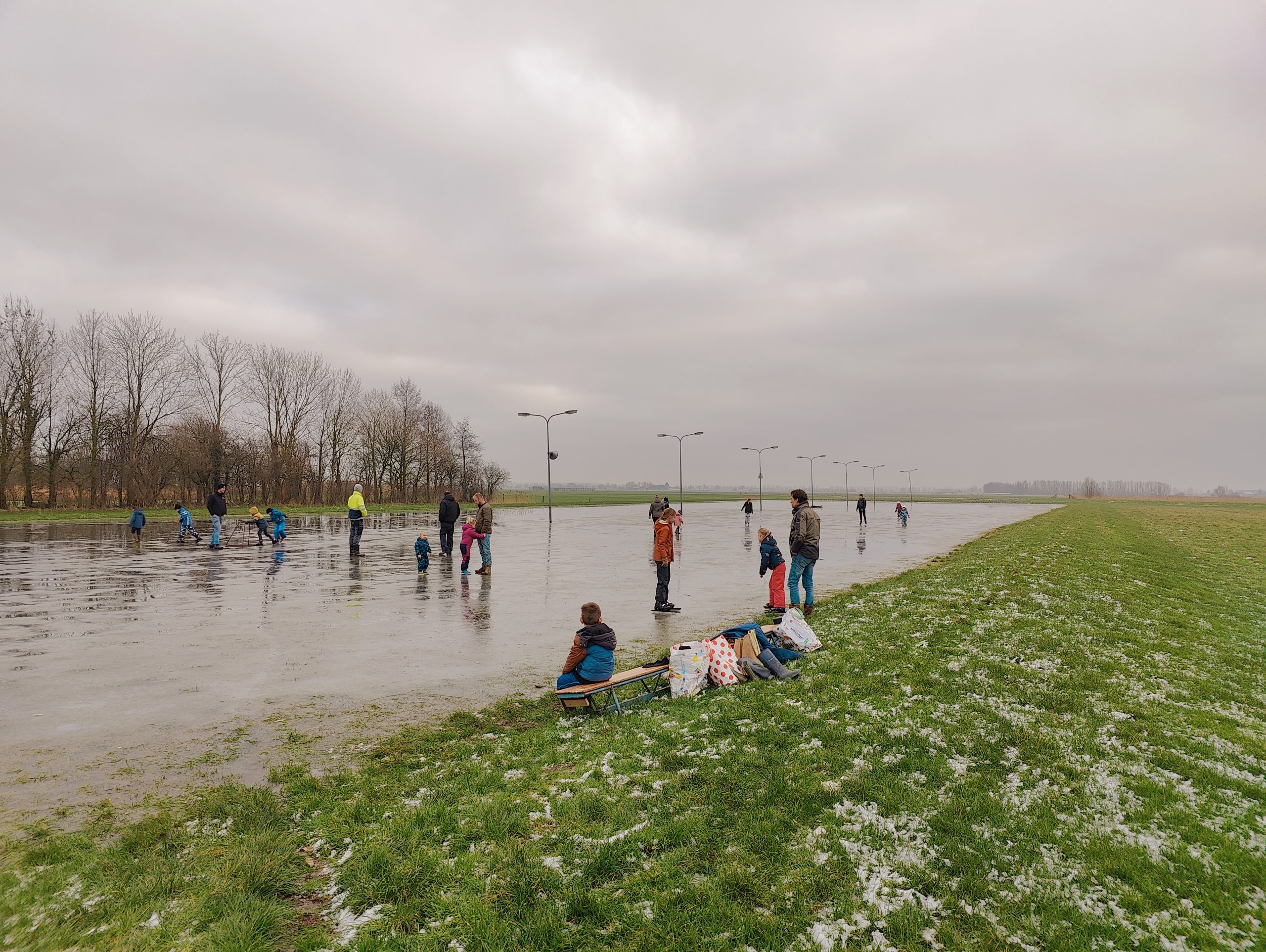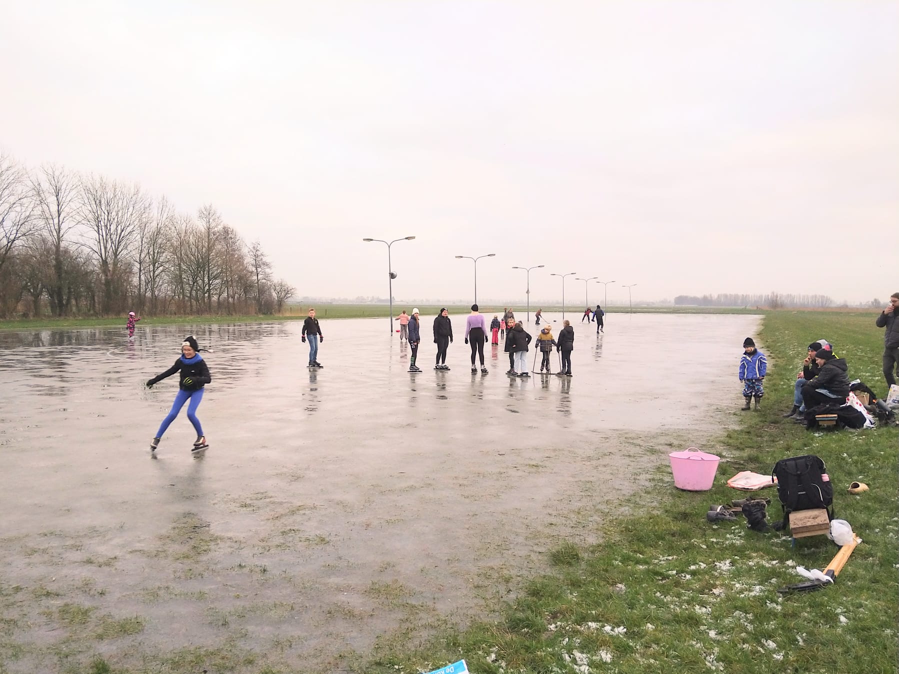 De afgelopen dagen had het stevig gevroren. De grote vraag die bij inwoners en bestuur heerste was: kan er geschaatst worden op de ijsbaan? ’s Ochtends 11 januari, werd het ijs gekeurd en het antwoord was: JA! We kunnen los!