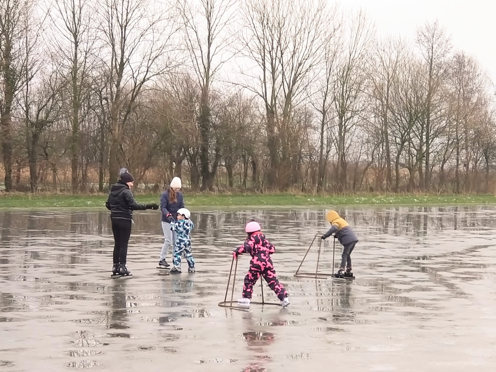 Het blijft genieten, schaatsen in de frisse buitenlucht. Jong en oud was op het ijs te vinden. Zo te zien was nog niemand het schaatsen verleerd en voor de jeugd die nog moest oefenen stonden de glijrekjes al klaar. Mooi om te zien dat de oudere jeugd de kleintjes hielpen om het schaatsen onder de knie te krijgen.