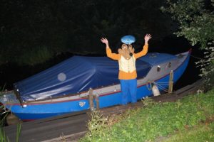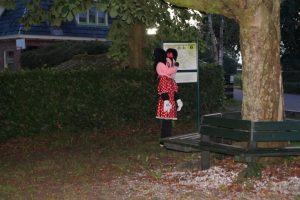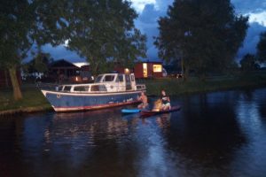 ’s Avonds was het tijd om gezellig samen te eten. Er werden lekkere patatjes geserveerd. Toen het ging schemeren werd het tijd voor een vossenjacht door het dorp. De Disney figuren waren terug gekomen en hadden zich in Visvliet verstopt. De groepjes met kinderen moesten letters verzamelen die uiteindelijk het woord Donald vormden. Daarna een spannend griezelverhaal en toen was het tijd om in de hutjes te kruipen om te gaan slapen.