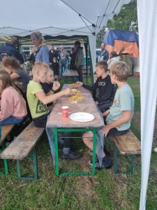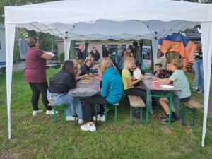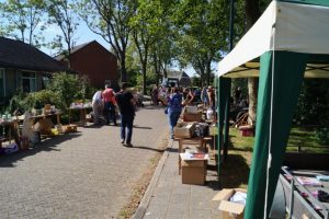 Zaterdagochtend was het voor het bestuur en vrijwilligers weer vroeg dag omdat de rommelmarkt opgebouwd moest worden. De kinderen konden hun handelswaren alvast uitstallen bij hun hutjes.