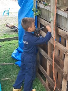 Dinsdagochtend druppelde iedereen rond half 10 weer binnen in Duckstad om de laatste hand te leggen aan de hutten. ’s Middags was het tijd om gezellig met zijn allen te knutselen aan grote tafels in het huttendorp. Het thema was Kapitein Haak en er zijn stoere zwaarden gemaakt en leuke vlaggetjes om de hutten mee te versieren.
