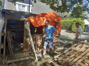 Om 19:00 werden de hutten afgebroken en alle pallets verplaatst naar het grote kampvuur buiten het dorp. We kijken weer terug op een mooie spelweek!