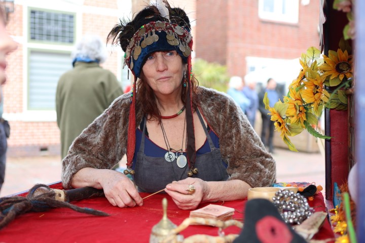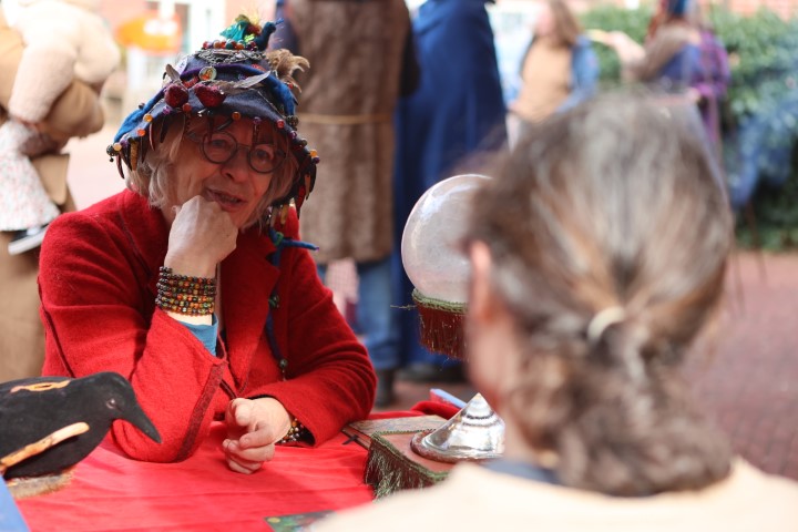 Later ook nog voor de kleintjes kwam Silvia even met een kleine pony. Verder was er een vuurtje waar je op kon bakken. En een waarzegster, of eigenlijk een orakel (een orakel verwijst in de eerste plaats naar een uitspraak die onder goddelijke inspiratie werd gedaan)
