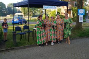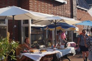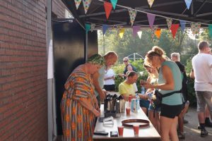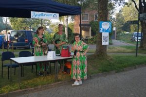 Bij het Heyrhuis konden de mensen kiezen of door het Heirhuys of toch over de weg. Een dikke 1200 deelnemers hebben de route door het Heirhuys gevold, waar ze dan even de verandering van onze voormalige winkel konden bekijken. Ook hier kon met een kopje koffie of thee kopen, verder hadden ze hier ook cake en andere versnaperingen. Zo had het Heirhuys voor de kerk IJsco’s te koop. Zeker met dit warme weer was dat een goed idee.