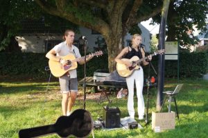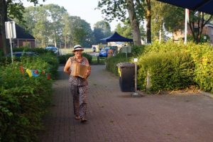 De wandelaars kwamen zo bij de Heirweg aan daar konden ze richting kerk, die open was i.v.m. open monumentendag, maar de route was richting Friesland. Op het kerkenpad werden de mensen ook hier weer verwelkomd met muziek door Janneke Slagter die de mensen muzikaal meenam naar de Heirweg.
