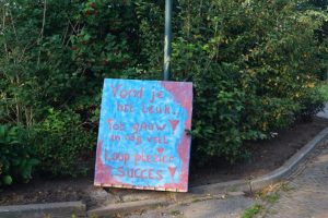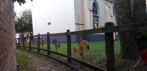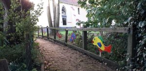 Zo kon men verder langs het Kerkenpad richting de Heirweg. Naast dat ons dorp mooi versierd was met vlaggetjes, spreuken en anders versiering, was het hek langs de kerk versierd met allemaal vissen. Zeker de moeite waard om ze nogmaals te bekijken.