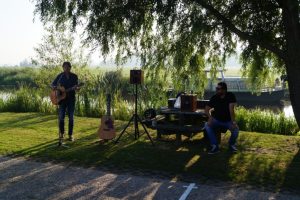 Aan de anderekant van de Lauwers waren Gert Sennema en Piter Willekes neer gestreken om ook hier de deelnemers toe te zingen, zowel in het Groningings, zal in het Fries.