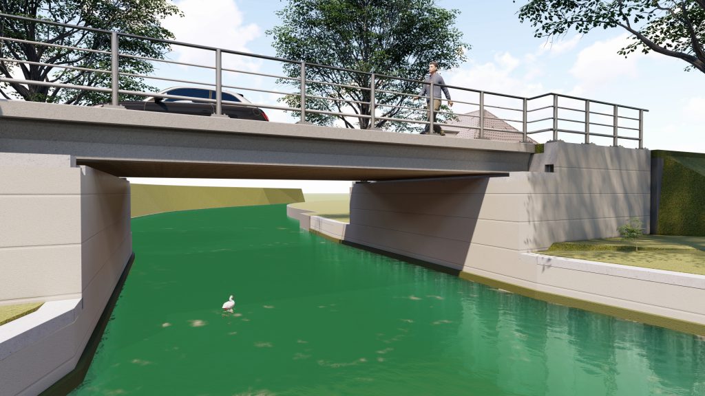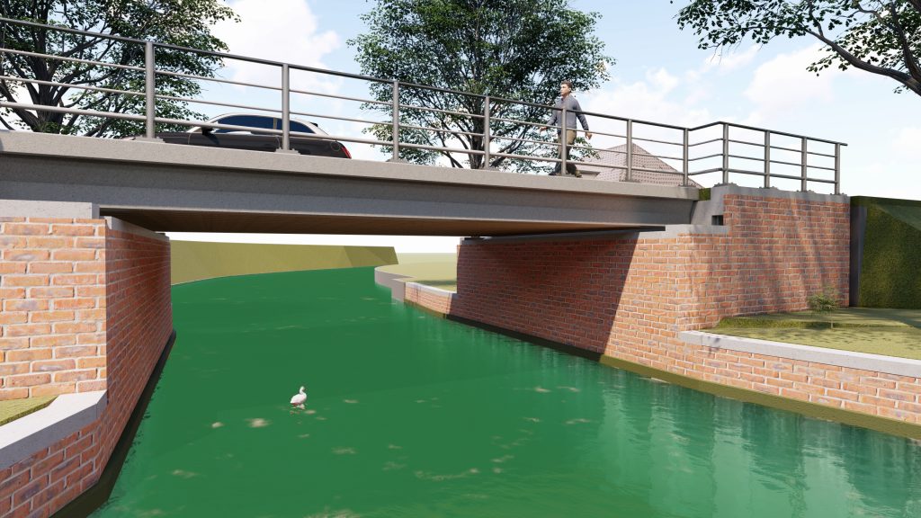 De brug krijgt natuurlijk ook een brugleuning. In de uiteindelijke uitvoering daarvan kunnen/mogen we als dorp meedenken. Mocht u een mooi, bij Visvliet passend en realistisch uitvoerbaar idee daarvoor hebben, laat het dan weten. Stuur ook in dat geval een mail naar ons mailadres.