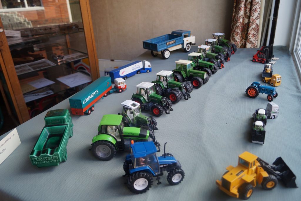 Deze keer is het de verzameling van Joost Mulder die staat in de etalage, een klein gedeelte er van. Joost heeft al jaren een verzameling van mini trekkers.